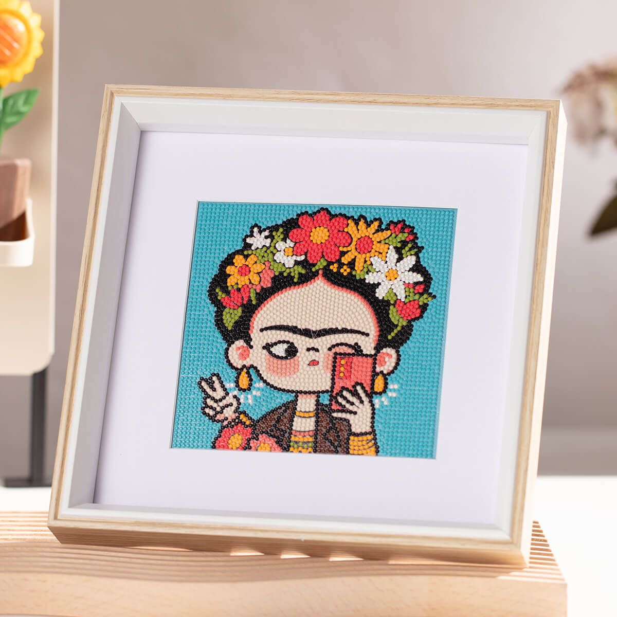 What if Frida Kahlo lived in the age of selfies? This diamond painting reimagines her iconic look with flowers, bold brows, and a modern touch of fun. Each sparkling diamond adds life to her selfie moment, turning a cultural icon into a joyful DIY art experience.