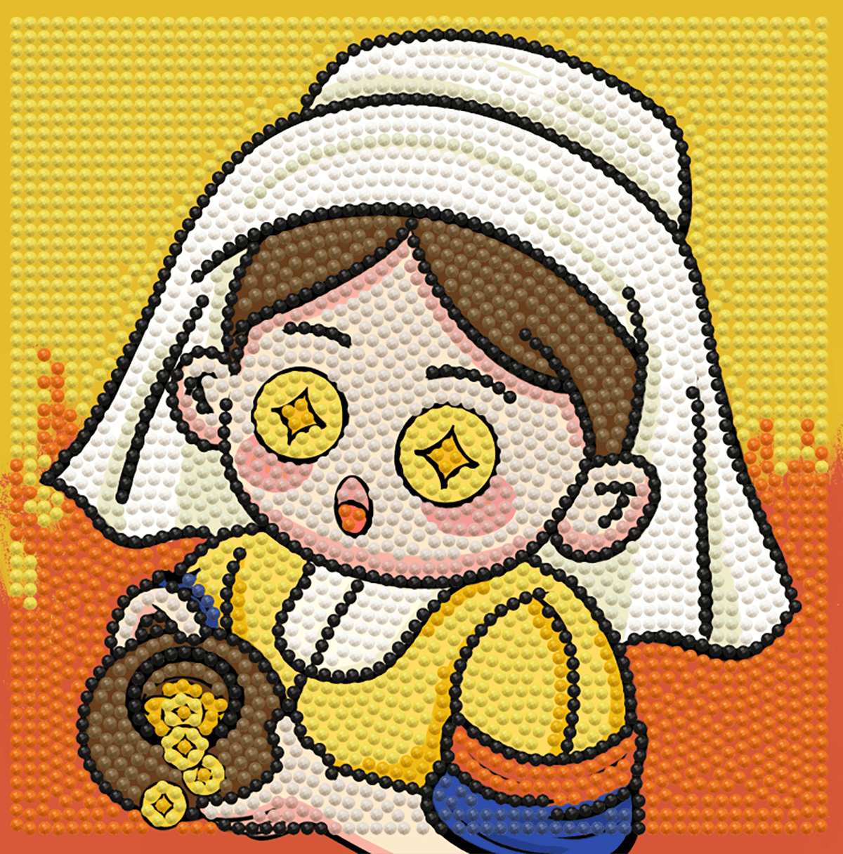 Who says wealth can’t be cute? This diamond painting brings humor and joy to life with a little rich woman whose eyes sparkle like coins. As you place each diamond, you’ll feel the fun of luck and abundance—making this DIY kit a playful reminder that happiness shines brightest when shared.