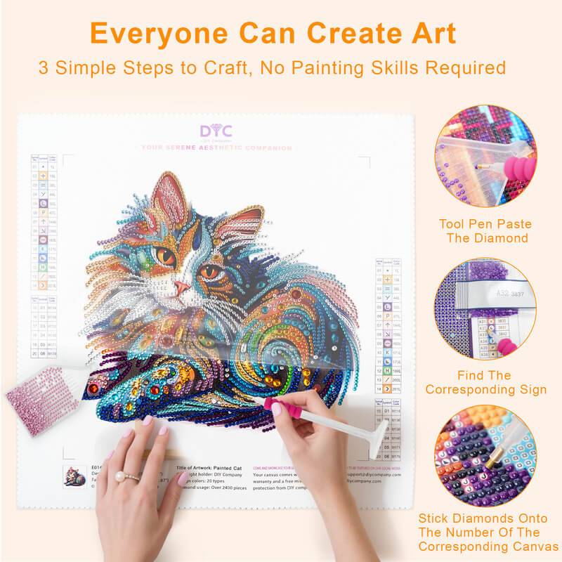 Not just a cat, but a living artwork—every swirl of color tells a story. With each diamond you place, the Painted Cat comes alive in sparkling rainbow hues. DYC’s Painted Cat diamond painting is a perfect mix of feline charm and artistic beauty, ready to brighten your space.
