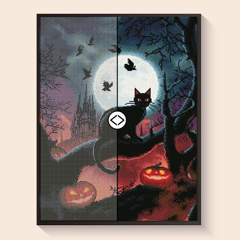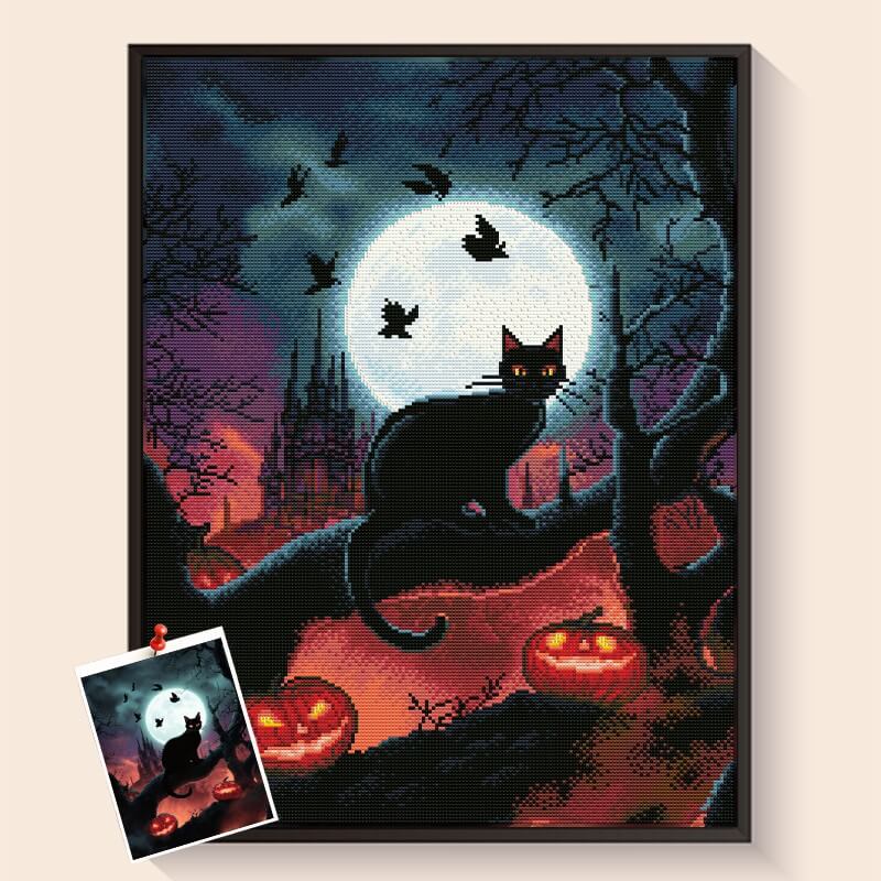 Halloween nights are full of mystery—and nothing captures it better than a black cat under the moon. With each diamond you place, the pumpkins glow brighter and the night feels more alive. This diamond painting is more than a craft—it’s your sparkling tribute to Halloween magic.